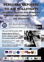 • EuroLifeNet: Realizou-se em Lisboa a III Conferência Internacional EuroLifeNet de 13-14 Novembro 2009 Personal exposure to air pollutants: Research, Policies and Awareness through participatory science and education, no ISCSP-UTL. A Conferência foi co-organizada pelo IES-JRC (Centro Comum de Investigação / Instituto Ambiente e Sustentabilidade, Comissão Europeia) e o CITIDEP. Participaram investigadores de Itália, Irlanda, Inglaterra, Belgica, Suissa, EUA e Portugal, e dezenas de professores do ensino secundário de Itália e Portugal. Professores e outros interessados puderam inscrever-se para obter 1 crédito de formação certificada. [site da Conferência] [Programa EuroLifeNet] [Inscrições].