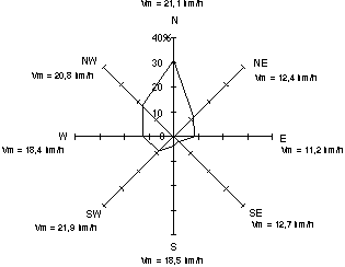 Figura 8 - Frequência e Velocidade dos Rumos Predominantes dos Ventos na Estação Climatológica de Sacavém
